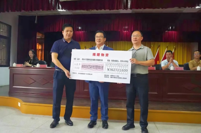 9月6日上午九點半,捐贈儀式在桂嶺鎮(zhèn)政府辦公大樓三樓會議廳舉行,衍生集團聯(lián)合揭陽市紅十字會及桂嶺鎮(zhèn)人民政府向桂嶺鎮(zhèn) 60 歲以上老人、16所小學師生捐贈價值360多萬元的敬老愛幼物資。衍生集團董事局主席彭少衍先生將捐贈物資單交接給揭陽市紅十字協(xié)會和揭陽市揭東區(qū)桂嶺鎮(zhèn)人民政府代表。揭陽市紅十字協(xié)會、揭陽市揭東區(qū)桂嶺鎮(zhèn)人民政府代表回贈感謝牌匾。